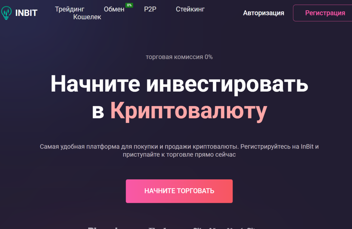 Официальный сайт InBit включает стандартные разделы: